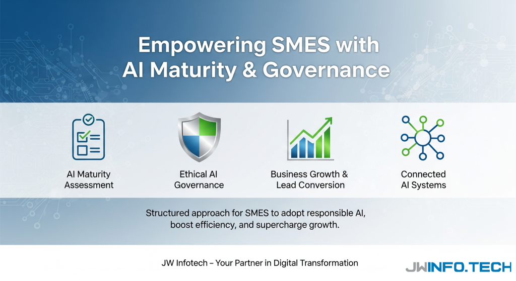 Discover how JW Infotech assists SMEs in achieving AI maturity and governance, leading to enhanced lead conversion rates and sustainable growth.